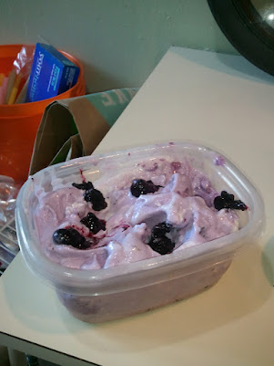 Ice cream in summer needs no explanation. It’s essential and necessary. My new ice cream recipe book is extensive and amazing. But due to the fact that I didn’t have one of the ingredients listed (and ice cream recipes need to be followed closely), I opted for this recipe. It was requested that I incorporate blueberries, so made a blueberry compote to be added. Adding mix-ins to the ice cream maker is super easy, and now I have purple-colored ice cream (and a VERY happy blueberry-loving boyfriend).