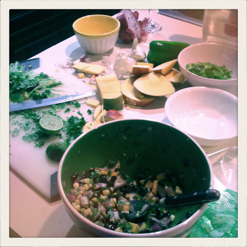 Taco night means a warzone of salsa prep.
