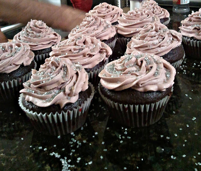 These have a little kick, in the form of cayenne pepper.  So I call these my Mexican Chocolate Cupcakes.  We both come from California and mexican food is a favorite.  As is chocolate and frosting.