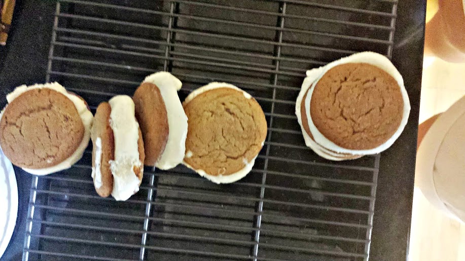 put your ice cream sandwiches together! Use a full scoop of ice cream for each cookie pair. After all have been assembled, place in freezer so they can be hardened and then devoured.