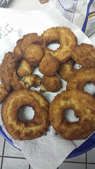 - Repeat with the remaining dough. When doughnuts are cool enough to handle but still warm, sprinkle all over with cinnamon sugar or or make glaze.