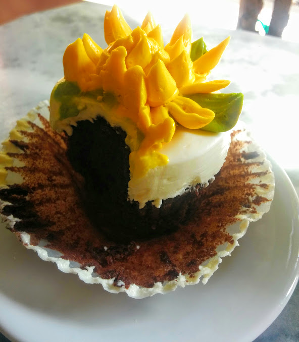 Cupcake Cafe is known for their intricately designed cupcakes that come in chocolate and vanilla. One look at these cupcakes in the pastry case and I could confirm this reputation. Each one is decorated in such a unique way that’s it’s like you are getting a completely different cupcake. I chose one with an unreal yellow flower, complete with green petals. What is this madness? I don’t even know how to eat it. But I think I can manage.